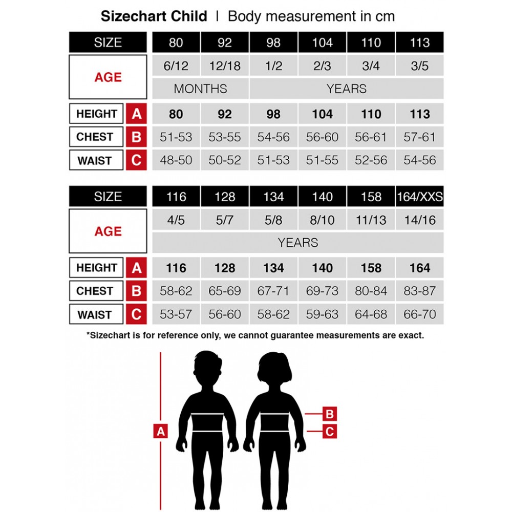 The costume is supplied in 4 sizes: 116 cm (4-5 yrs), 128 cm (5-7 yrs), 140 cm (8-10 yrs) and 158 cm (11-13 yrs).